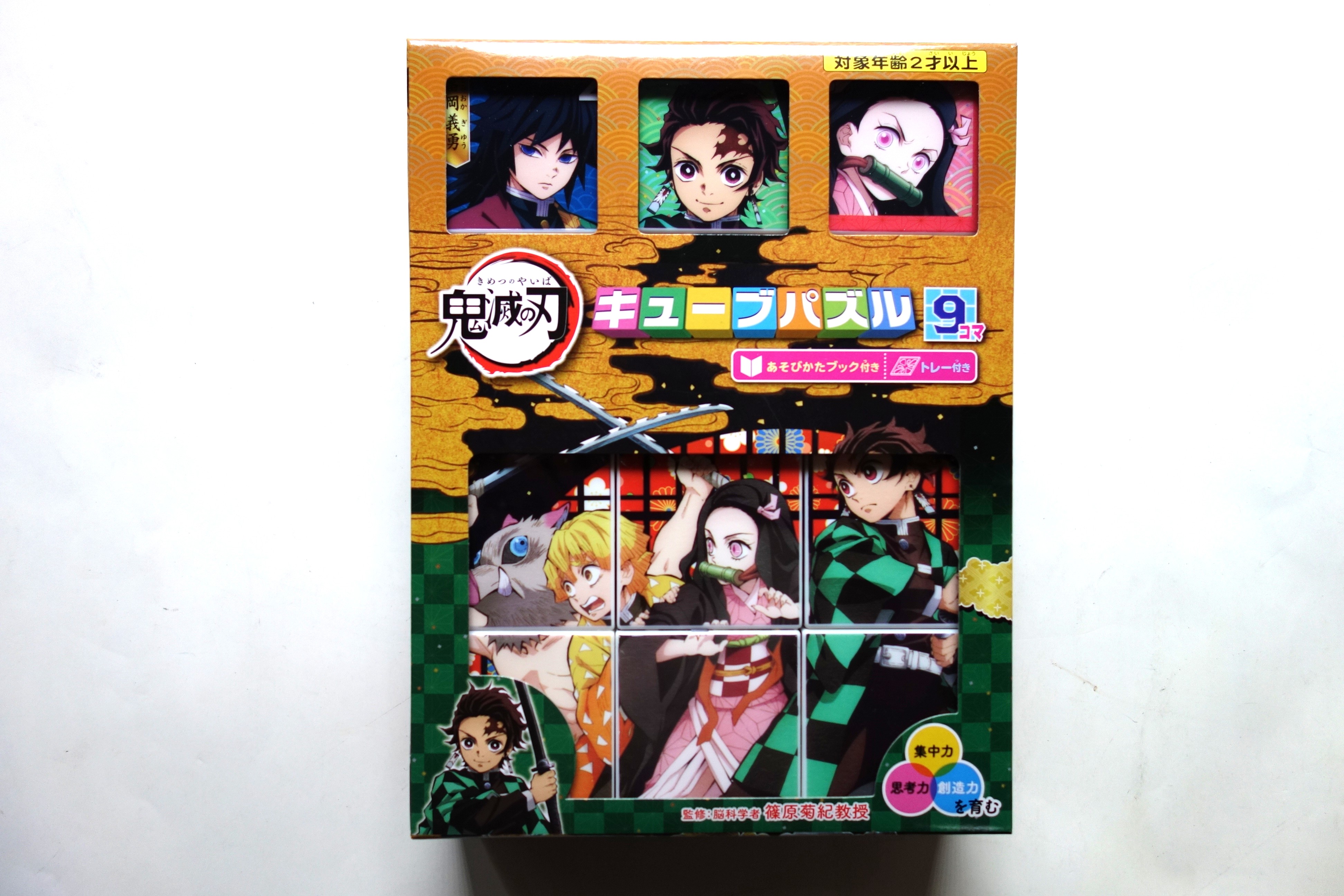 ※(7%引き販売実施中)1片が約5㎝のサイコロの大きさでその9個のサイコロ状のキューブパズルで各6片の鬼滅の刃の絵柄を合わせる小さい子のパズル。箱寸法は横160×縦210×奥55㎜。JAN=4905096131217
