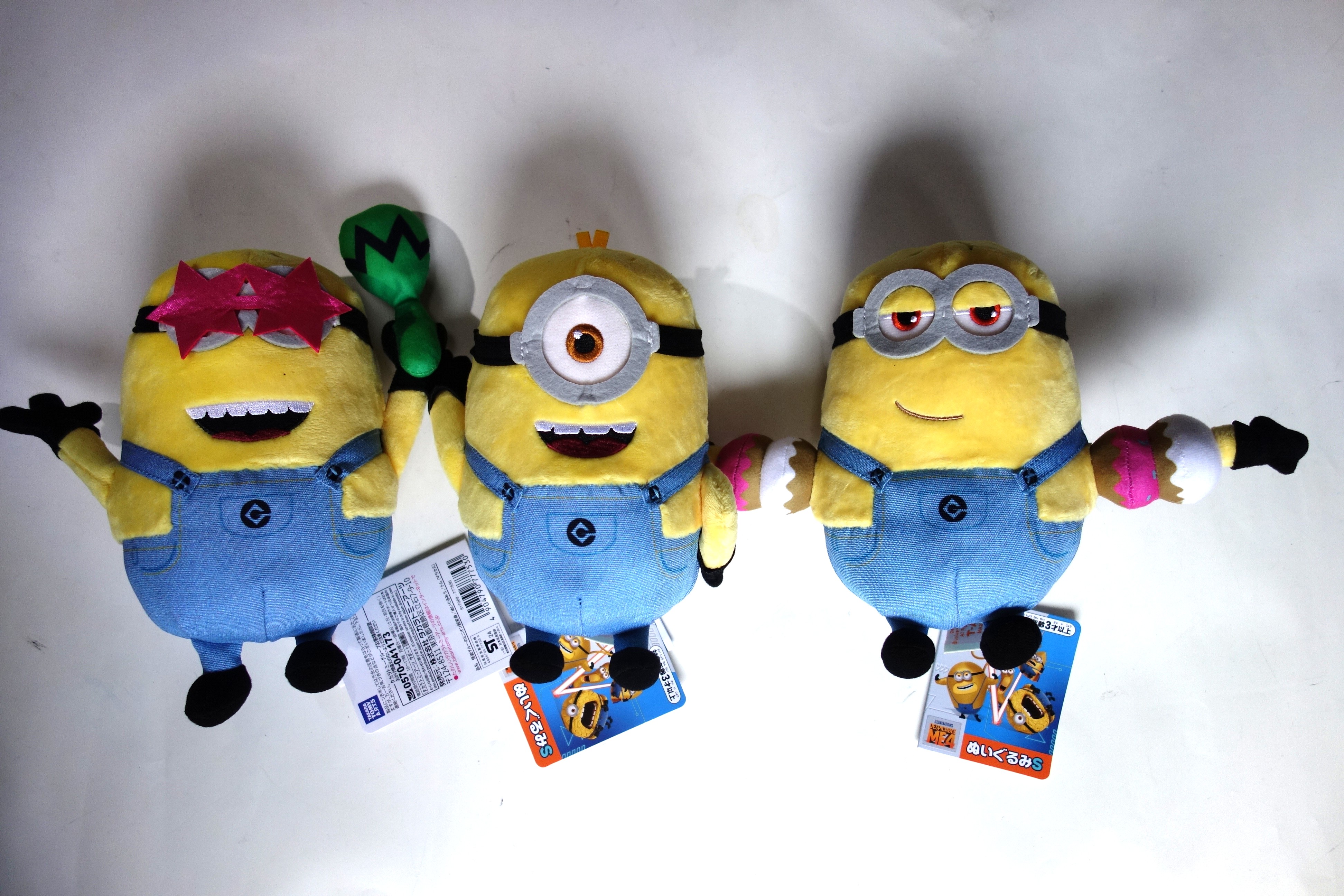 ※5%引き感謝セール実施中。ぬいぐるみの怪盗ミニオン3種類で1単位24個の内ミニオンマラカスとドーナッツが各9個と写真の真ん中のミニオンメルが6個の1単位24個での販売です。ただ各1個入りの袋がシワがあり袋からだせばきれいです。又、24個入り箱もあり合わせの箱です。平均身長は約20㎝。JAN=4904790777530・4904790777516・4904790777509・